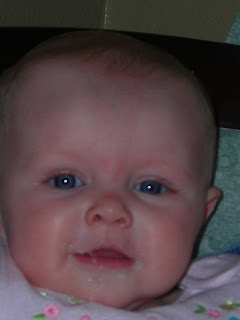 Here are some long overdue pics of baby Brigitta. This was when she was about 5 to 51/2 months old. And, the first time she really sat in her highchair. Looks like she enjoys it!